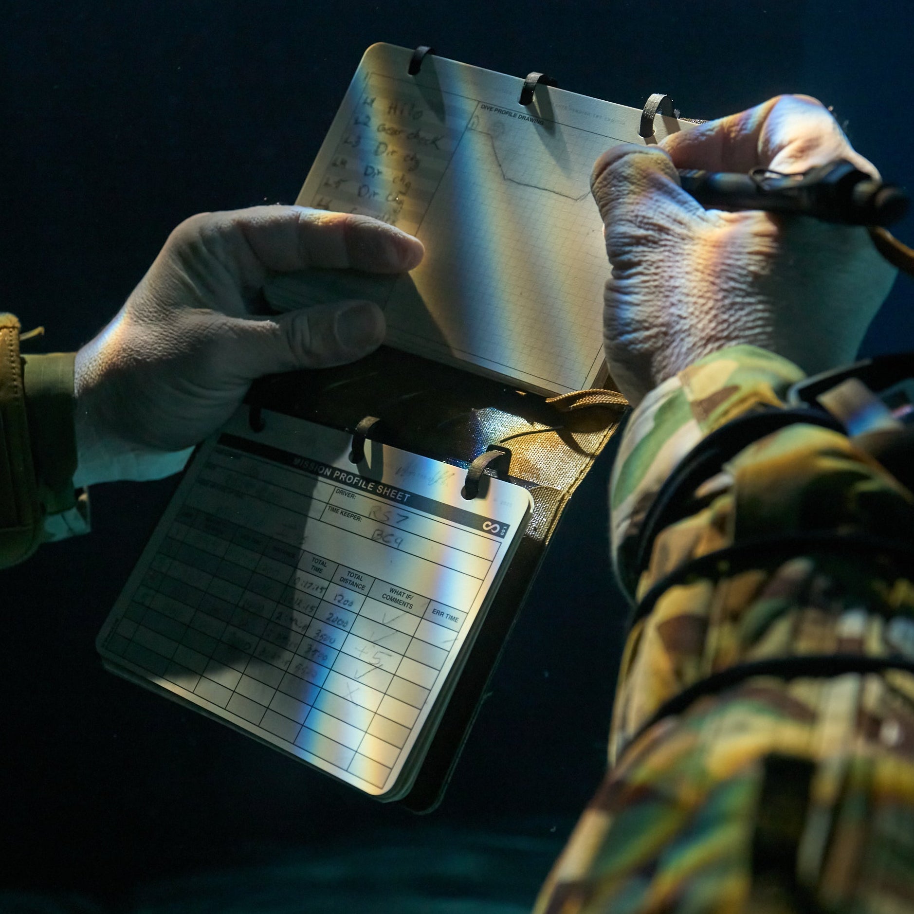 Mud, blood, rain, grease—wipe it off. Your notes stay clean while everything else drowns. Keep going with your information intact.